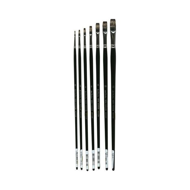 Badger natural fibres offer the resistance and strength of an extra fine bristle combined with the precision and elasticity of soft hair towards the tip. This is a fine, oily hair that is as responsive and soft as sable, but with enhanced durability and a more affordable price. Badger brushes are excellent for detailed brush work and soft glazing in oil or acrylics. They are extremely versatile and are well suited to many techniques and media. Many professional watercolorists have adopted them as a substitute for sable. The hairs resist staining, making them easy to clean and maintain. Long handle.