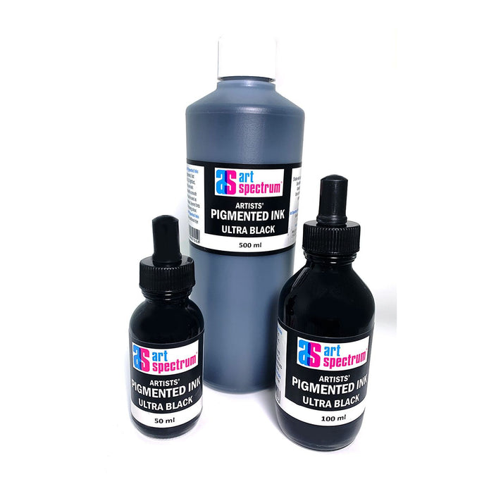 Art Spectrum Pigmented Inks are acrylic based, fast drying, lightfast, water-resistant, non-toxic, intense colours with a smooth even flow that can be used as transparent washes, layered tints or bold fields of strong colour.