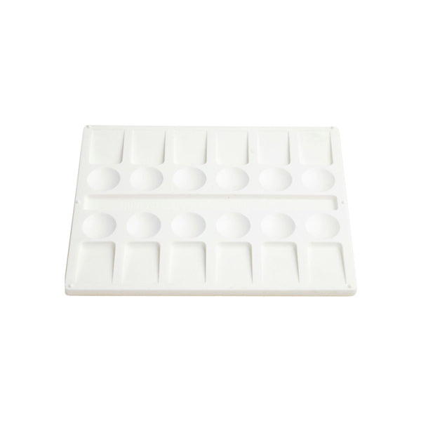 Art Spectrum No 2 Palette is a strong white plastic palette suitable for gouache, watercolour and ink. It has flat palette section with 12 wells for colour and 12 wells for mixing.