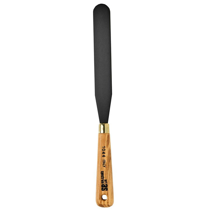 Art Spectrum Painting and Palette Knives are a professional quality European made range with hand ground hardened steel blades in a black burnished finish. The handle is made of Olive wood and has a polished brass ferrule.