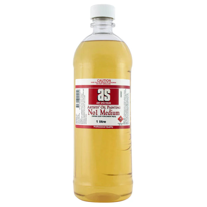 The leanest medium. Dries overnight, depending on climate and thickness of paint. Art Spectrum No.1 Medium contains a well balanced amount of Stand Oil and turpentine for a well balanced, permanent paint layer.