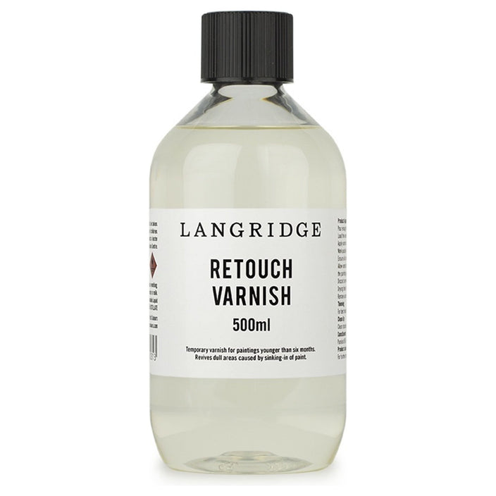 Temporary varnish for paintings six months or younger. Revives dull areas caused by ‘paint-sinking’. Helps adhesion of subsequent paint layers.