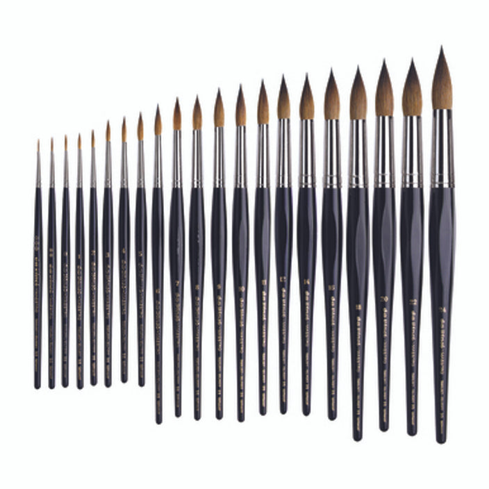 Da Vinci Maestro watercolour brushes are made with Siberian Kolinsky red sable hair from selected male winter tails with silver coloured ferrules and short black polished handles. The #35 series features a long point.