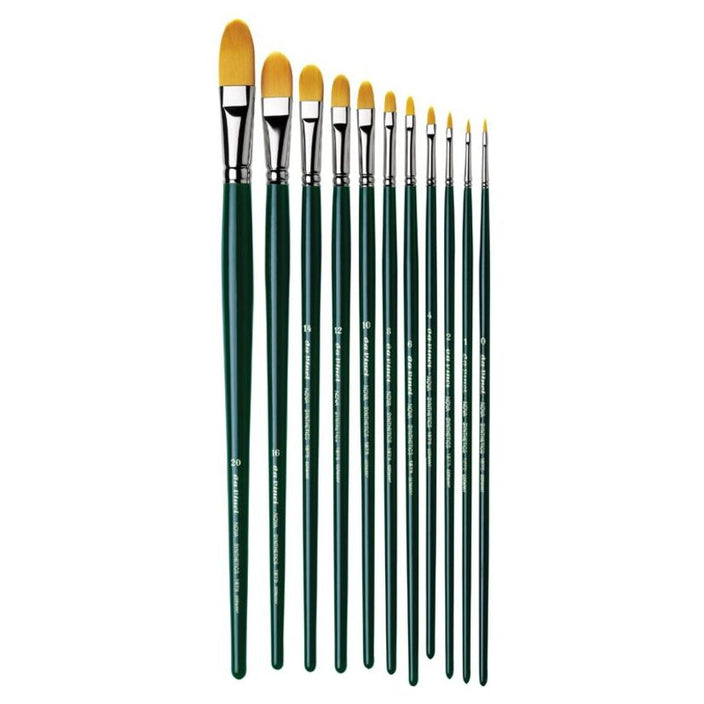 Da Vinci 1875 Nova Synthetic Filbert oil painting brushes with finest synthetic fibre, silver ferrule and long green polished handles.