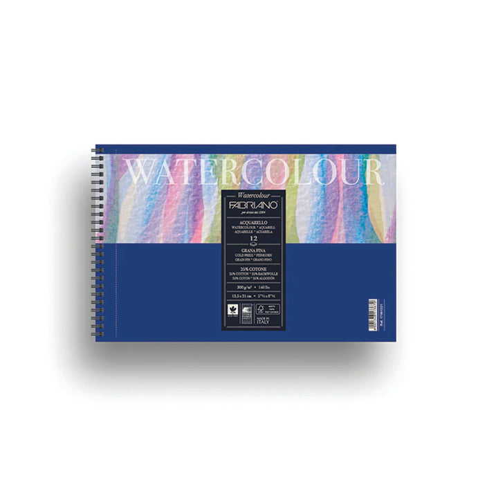 Fabriano Auquarello Watercolour paper is made from 25 % cotton and lignin free cellulose. Cold pressed 300gsm. Ideal for watercolour, gouache, acrylic, ink, charcoal and drawing.