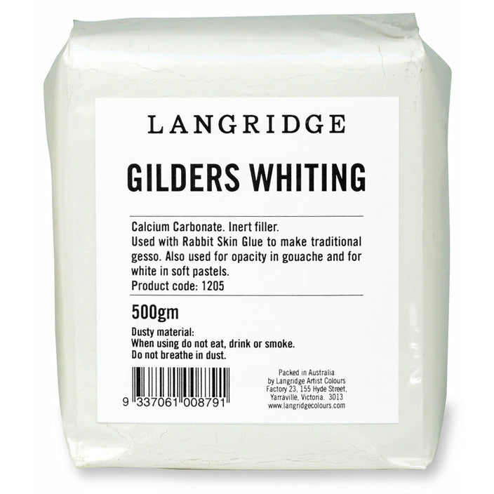 Used with Rabbit Skin Glue to make traditional gesso. Also used for opacity in gouache and for white in soft pastels. Calcium Carbonate. Inert filler.