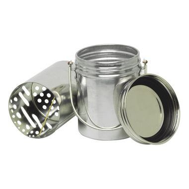 Chrome plated tin, screw on cap, with chrome plated tin receptacle for turps and spirits.