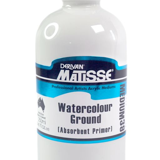 Use Watercolour paints on any surface with Matisse Watercolour Ground. Apply this medium to many non-traditional watercolour surfaces to create a paper like highly absorbent ground for your watercolour and mixed media washes.