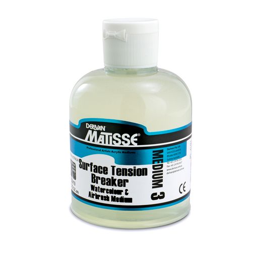 Used correctly, it will make Matisse paint more "runny" by increasing its flow properties. Its presence within a water and paint mixture will greatly facilitate colour penetration into absorbent paper or fabric grounds, e.g. raw canvas.