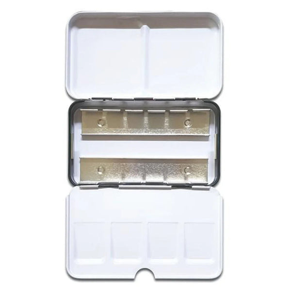 Create your own ideal paint set with this sleek, durable metal case by Mungyo. The black enamel exterior offer both elegance and functionality, while the foldout palette and removable tray provide excellent versatility for artists on the go.