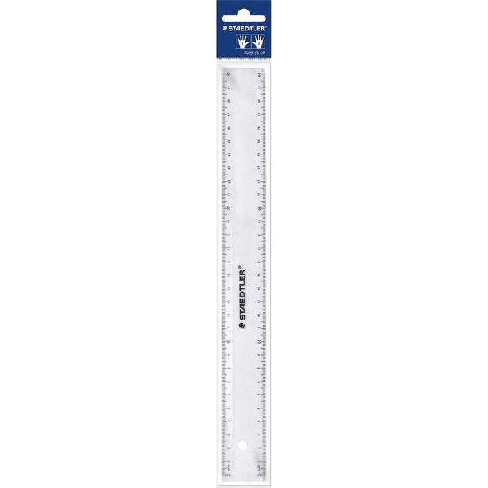 The Staedtler Clear ruler is made from transparent plastic. It has beveled edges to prevent ink smudging. It has a scale on both sides, making it ideal for both right and left handed users.