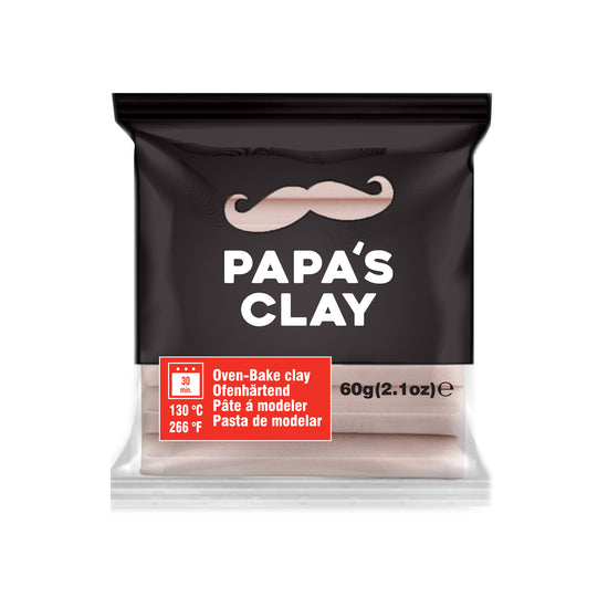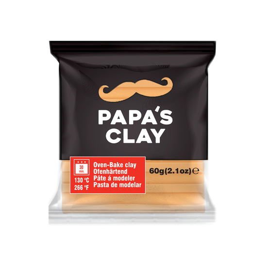 Papas Polymer Clay is a synthetic clay with unique properties such as elasticity, and a resistance to temperature change. Unlike traditional types of clay, polymer clay does not air dry, which allows for multi stage work, with plenty of time for modelling. It can be easily combined with different materials such as metal, glass, wood or fabrics.